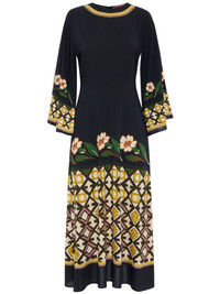 Sorella dress Highlights - Black/multicolour - Jersey texture - All-over graphic print - Concealed rear zip fastening - Round neck - Bell sleeves - Two side slit pockets - Pleated skirt - Mid-length Made in Italy Composition Viscose 96%, Elastane 4%