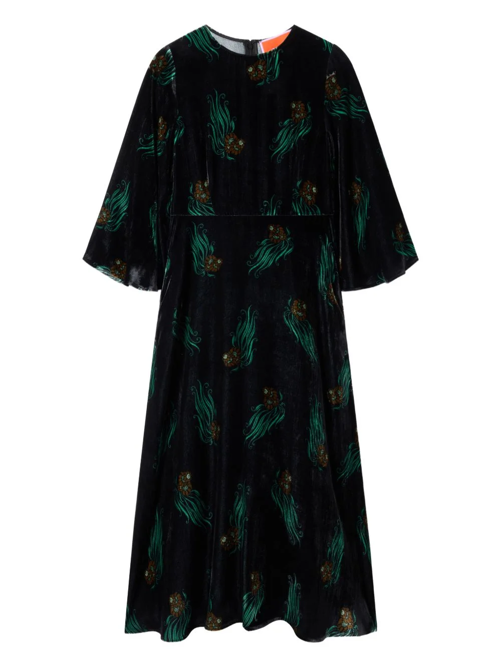 Sorella printed midi dress Highlights - Black - Floral print - Round neck - Short sleeves - Zip fastening Made in Italy Composition Viscose 82%, Silk 18% Washing instructions Read Manufacturer Guidelines