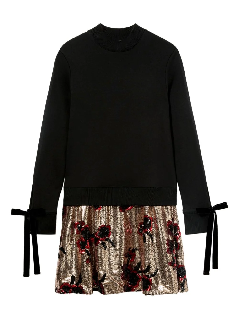 Sporty dress Highlights - Black - Sequin embellishment - Floral pattern - Tie cuffs - Sweatshirt bodice - A-line skirt Made in Italy Composition Cotton 80%, Polyester 20% Washing instructions Read Manufacturer Guidelines