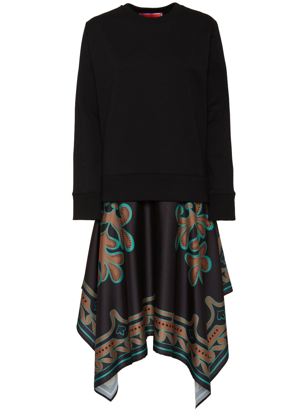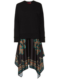 Sporty Foulard midi dress Highlights - Black - Crew neck - Long sleeves - Asymmetric hem Made in Italy Composition Cotton 70%, Polyester 30%
