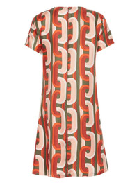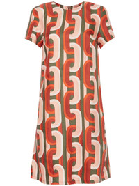 Swing chain-link print mini dress Highlights - Beige/multicolour - Silk - Twill weave - Chain-link print - Round neck - Concealed rear zip fastening - Slip pockets to the sides - Short sleeves - Thigh-length - Straight hem Made in Italy Composition Silk 100%
