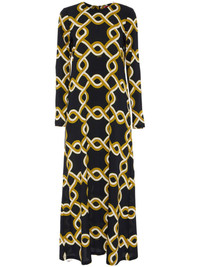Swing dress Highlights - Black - All-over graphic print - Round neck - Long sleeves - Flared skirt - Straight hem Made in Italy Composition Viscose 100%