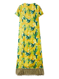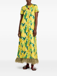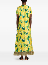 Swing floral-print feather-hem maxi dress Highlights - Lemon yellow - Botanical motif - Short sleeves - Feather trim at hem Made in Italy Composition Ostrich Feather 100%, Silk 100% Washing instructions Read Manufacturer Guidelines