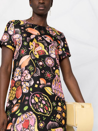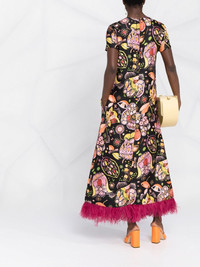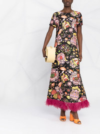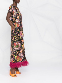 Swing floral-print maxi dress black/multicolour silk/ostrich feather all-over floral print feather detailing concealed rear zip fastening round neck short sleeves straight hem ankle-length Made in Italy Composition Silk 95%, Ostrich Feather 5% SIZE & FIT Model measurements Height 5 ft 10 in(1.77 m) Bust/Chest 32.28 in(82 cm) Hips 35.03 in(89 cm) Waist 25.19 in(64 cm) Washing instructions Dry Clean Only