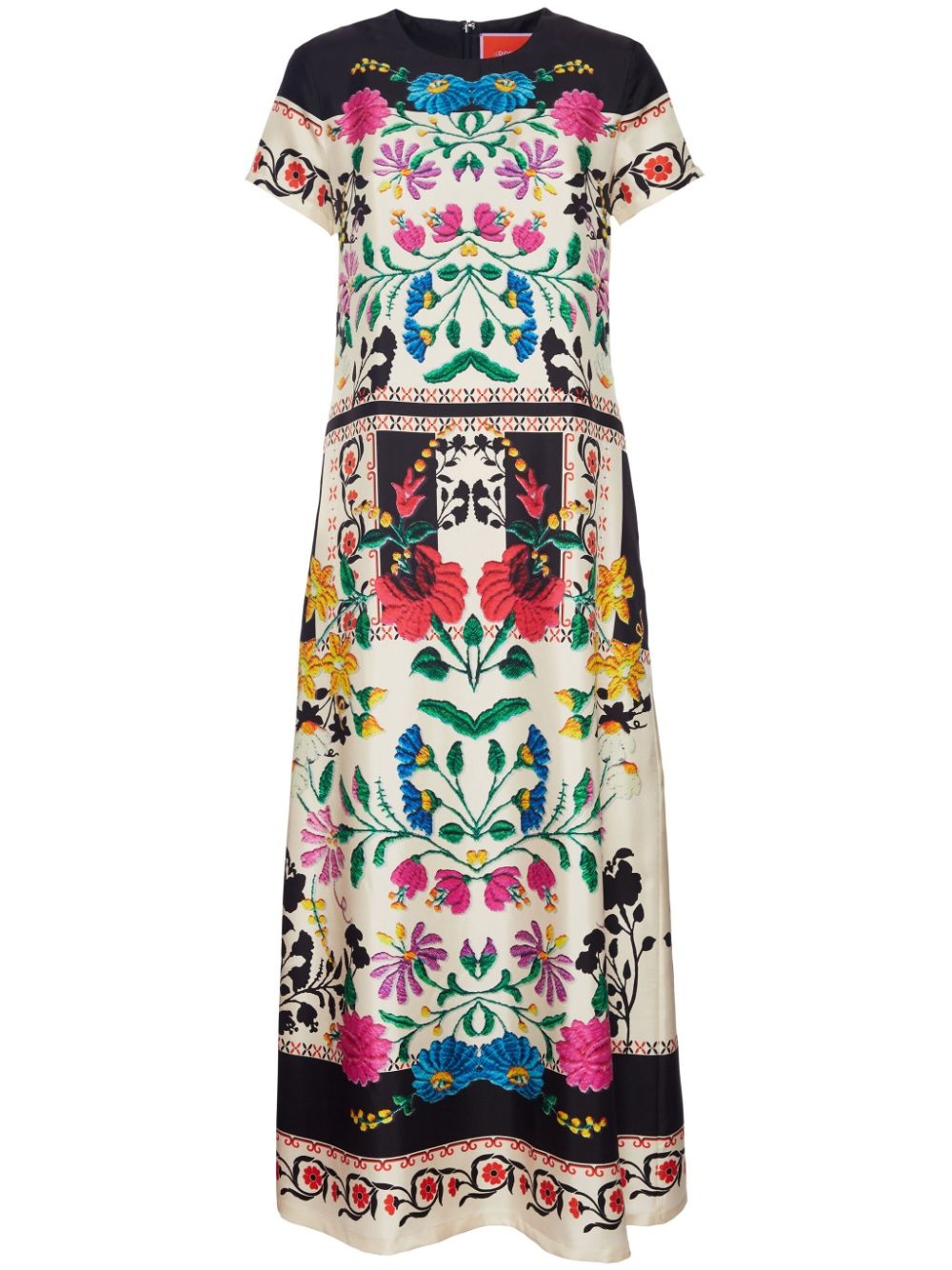 Swing floral-print maxi dress Highlights - White/multicolour - Silk - All-over floral print - Round neck - Short sleeves - Rear zip fastening - A-line - Straight hem - Ankle-length Made in Italy Composition Silk 100%