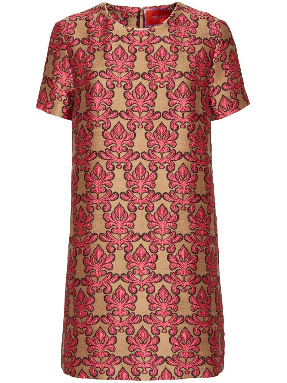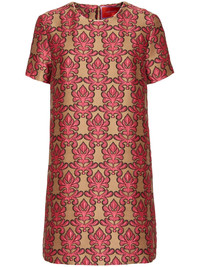 Swing mini dress Highlights - Pink - Concealed rear zip fastening - Crew neck - Short sleeves - Straight hem Made in Italy Composition Polyester 74%, Wool 9%, Acrylic 9%, Silk 5%, Polyamide 3%