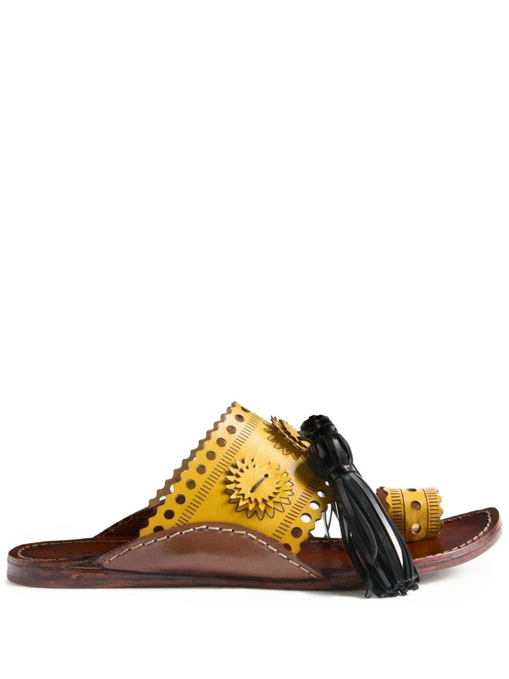 tassel-embellished sandals Highlights - Yellow - Cut-out detailing - Decorative tassels - Open toe design - Flat sole Imported Composition Lining: Leather 100% Outer: Leather 100% Sole: Leather 100%