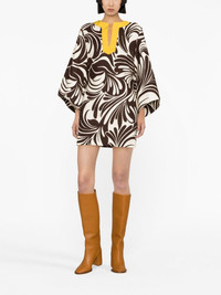 The Kaftan Mini printed dress The Kafant Mini dress from La DoubleJ makes a retro statement with its marbled ‘60s-inspired print and contrasting yellow neckline. It’s cut from airy Italian slub cotton to a roomy structured silhouette that’s enhanced with wide flared sleeves. Highlights - Chocolate brown/white - Stretch-cotton - Slub texture - All-over graphic print - Round split neck - Long wide sleeves - Shift style - Thigh-length - Straight hem Made in Italy Composition Cotton 98%, Elastane 2% SIZE & FIT Model measurements Height 5 ft 10 in(1.78 m) Bust/Chest 29.92 in(76 cm) Hips 34.64 in(88 cm) Waist 23.62 in(60 cm) Measurement SLEEVE LENGTH 15.35 in(39 cm) HIPS 38.58 in(98 cm) LENGTH 31.88 in(81 cm) WAIST 30.7 in(78 cm) BUST 32.28 in(82 cm) FittingInformation Designed for a relaxed fit, this piece allows for comfort and movement when worn Made from a midweight non-stretch fabric This piece fits true to size – take your usual size Washing instructions Machine Wash