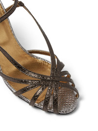 The Weekend wedge sandals Highlights - Anthracite grey - Leather - Diagonal stripe pattern - Snakeskin effect - Metallic finish - Caged design - Peep toe - Buckle-fastening ankle strap - Branded insole - Wedge heel - Rubber sole Made in Italy Composition Other fibres 100%