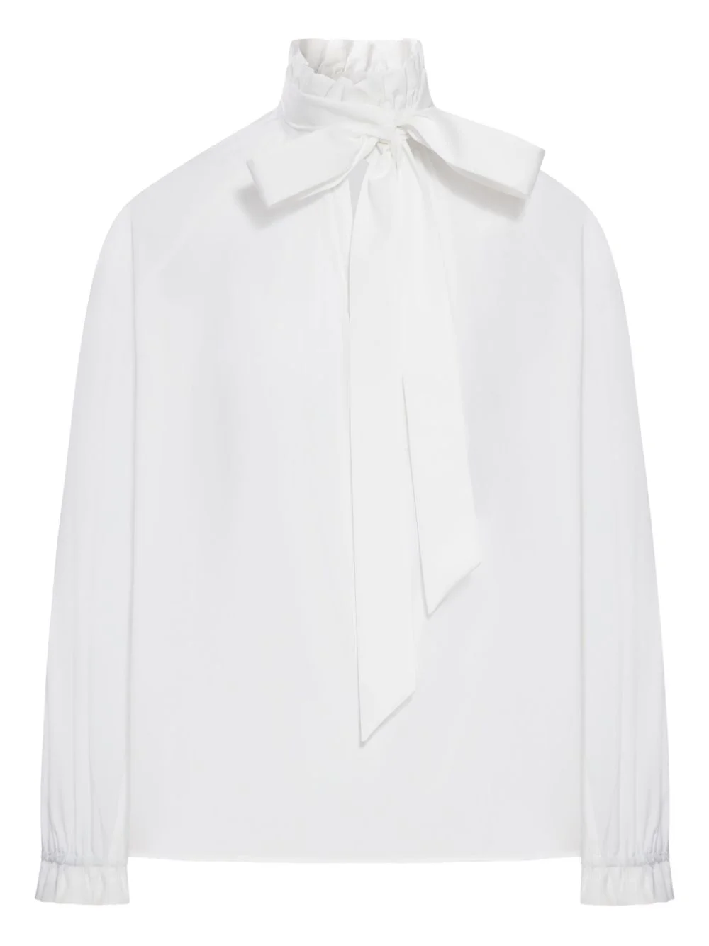tie-neck cotton blouse Highlights - White - Tie detail - High neck - Long sleeves - Gathered cuffs - Gathered neck Made in Italy Composition Cotton 100% Washing instructions Read Manufacturer Guidelines