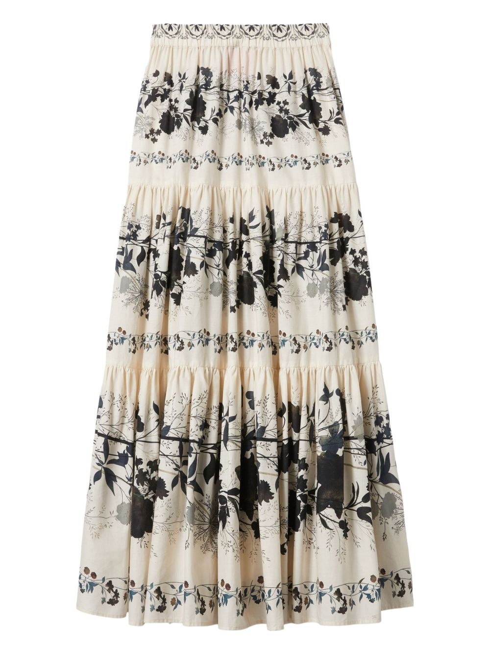 tiered skirt Highlights - Ivory white - Elasticated waistband - All-over graphic print - Ruched detailing - Side slit Made in Italy Composition Cotton 100%