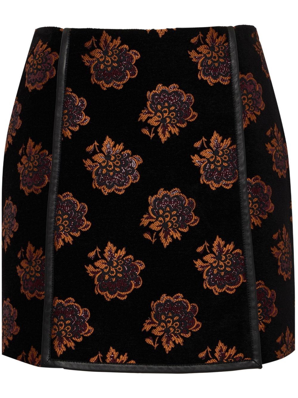 Twiggy mini skirt Highlights - Black/multicolour - Cotton-recycled polyester blend - Patterned jacquard - Thigh-length - Concealed side fastening - Faux-leather piping detail - A-line - Side slits Made in Italy Composition Viscose 32%, Recycled Polyester 22%, Cotton 22%, Polyester 21%, Metal (Other) 3%