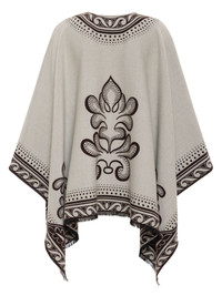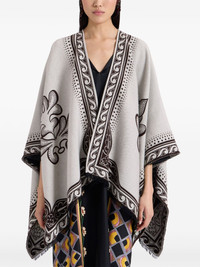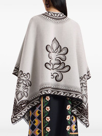 two-tone poncho Highlights - White/brown - Wool-silk blend - Botanical print - Cape design - Open front - Wraparound style - Asymmetric hem Made in Italy Composition Wool 96%, Silk 4%