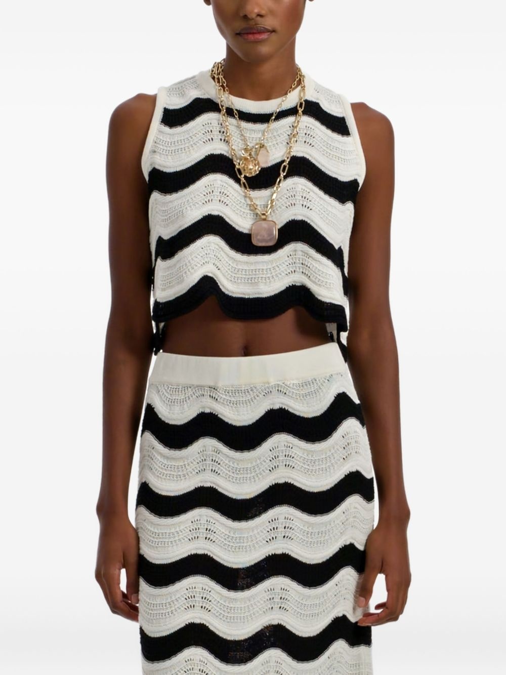 wave-pattern knitted top Highlights - Ecru black - Wave pattern - Crew neck - Sleevelesss - Cropped - Scalloped hem Made in Italy Composition Cotton 100%