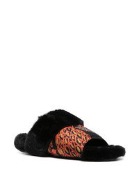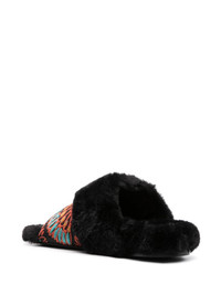 Winter jacquard slides Breathing life into the colder months, La DoubleJ presents its Winter slides. Lined and trimmed with faux fur to keep feet warm, it boasts a jacquard upper adorned with the brand's Sicomore pattern, in line with the label's preference for bold, lively motifs. Highlights - Black - Patterned jacquard - Faux-fur trim - Round open toe - Single toe strap - Slip-on style - Faux-fur lining - Branded insole - Flat rubber sole Made in Italy Composition Silk 100% SIZE & FIT Measurement HEEL 1.37 in(3.5 cm) Sole height 0.78 in(2 cm)