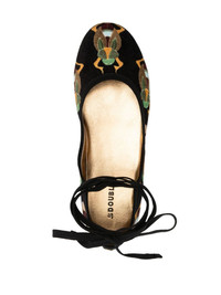 Winter velvet ballerina shoes Boasting a classic almond-toe silhouette with tie-fastening ankle straps, La DoubleJ's Winter ballerina shoes are made from tactile cotton velvet saturated with the brand's Scarab print, a nod to the label's affinity for bold, colourful motifs. Highlights - Black/multicolour - Cotton - Velvet - All-over graphic print - Almond toe - Tie-fastening ankle strap - Branded leather insole - Flat sole Made in Italy Composition Cotton 100% SIZE & FIT Measurement HEEL 0.78 in(2 cm)