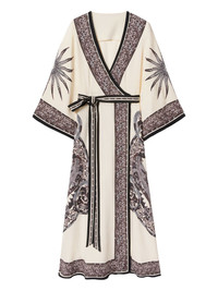 wrap maxi dress Highlights - Light beige - Tied waist - Contrasting trim - Plunging v-neck - Three-quarter length draped sleeves Made in Italy Composition Viscose 96%, Elastane 4%