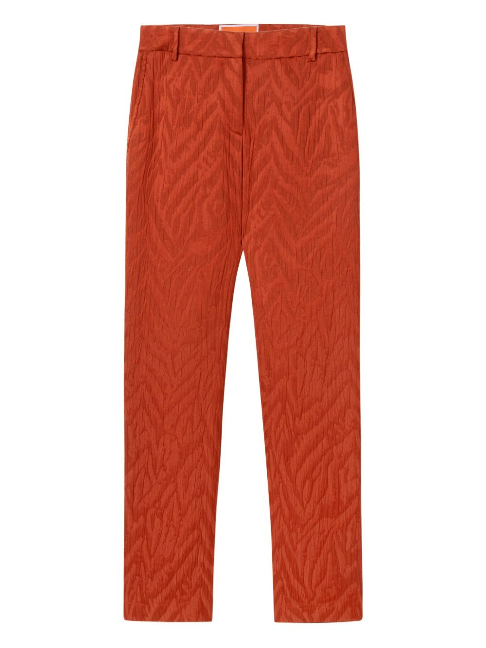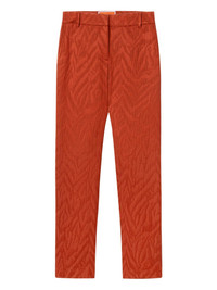 zebra-jacquard trousers Highlights - Red - Zebra jacquard - Welt pockets - Slash pocket - Belt loops - Zip fastening Made in Italy Composition Viscose 71%, Cotton 29% Washing instructions Read Manufacturer Guidelines