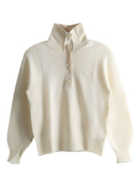 buttoned sweater Highlights - Ivory - Stand neck - Button fastening - Ribbed trims - Long sleeves - Embroidered logo Imported Composition Wool 100% Washing instructions Machine Wash