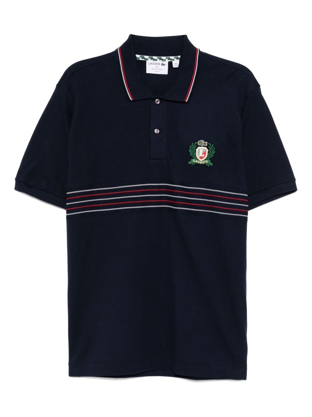 Classic Fit L.12.12 Embroidered Shield polo shirt Highlights - Navy blue - Short front button fastening - Polo collar Made in France Composition Cotton 100% Washing instructions Machine Wash