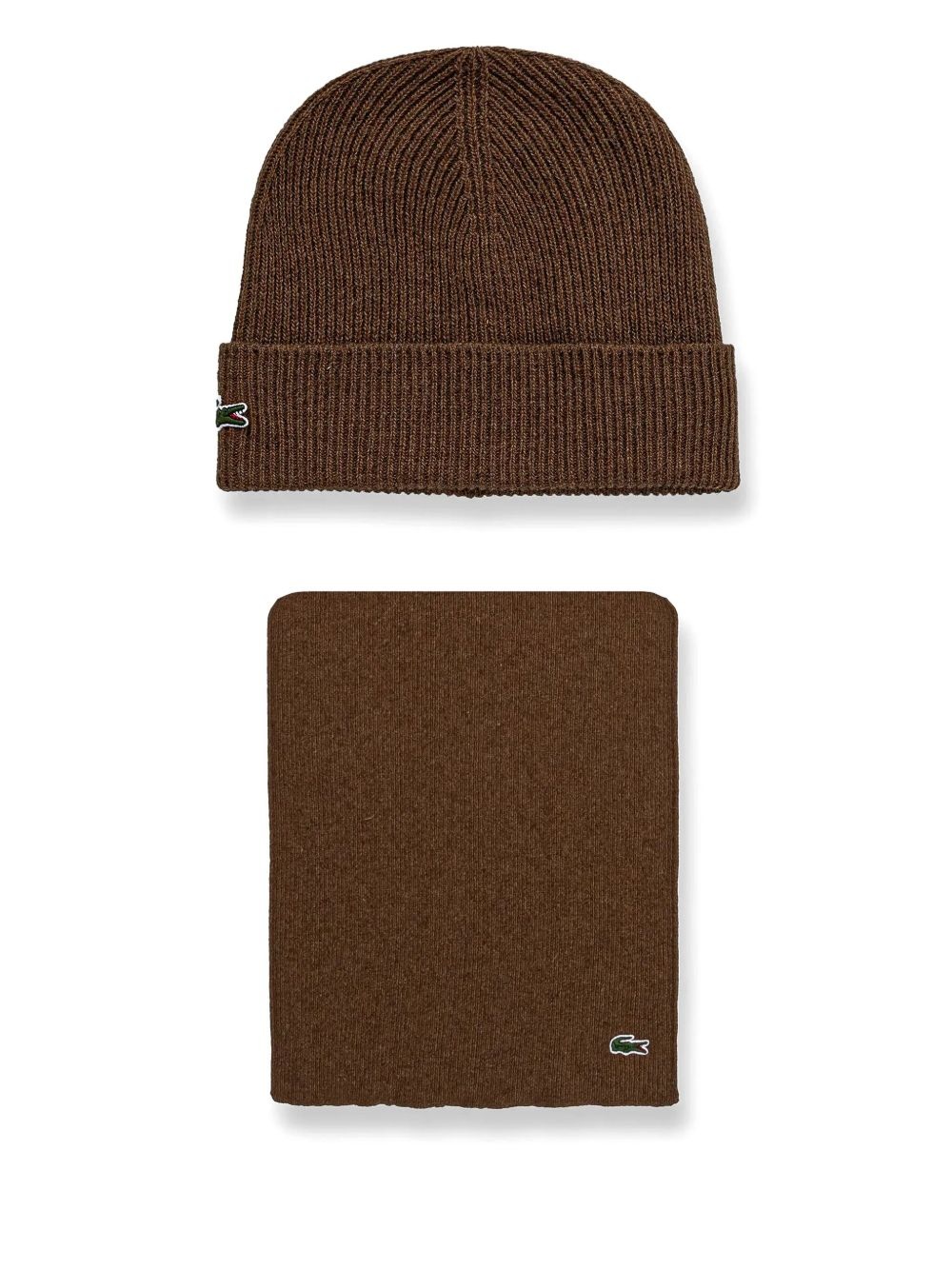 crocodile-applique beanie (set of two) Highlights - Chocolate brown - Self-tie fastening - Turn-up brim - Applique logo Imported Composition Wool 100%