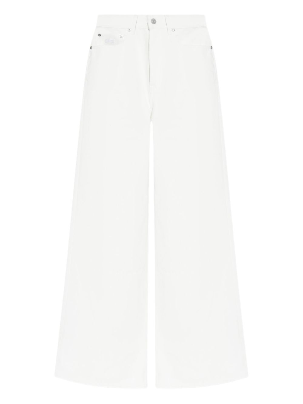 flared trousers Highlights - White - Front button and zip fastening - Classic five pockets - Leather tag - High-waisted Imported Composition Outer: Cotton 100% Lining: Polyester 65%, Cotton 35%