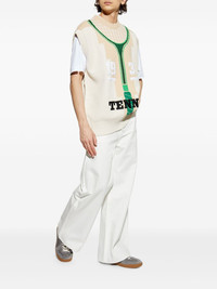 Beige Runway Graphic Sweater Vest