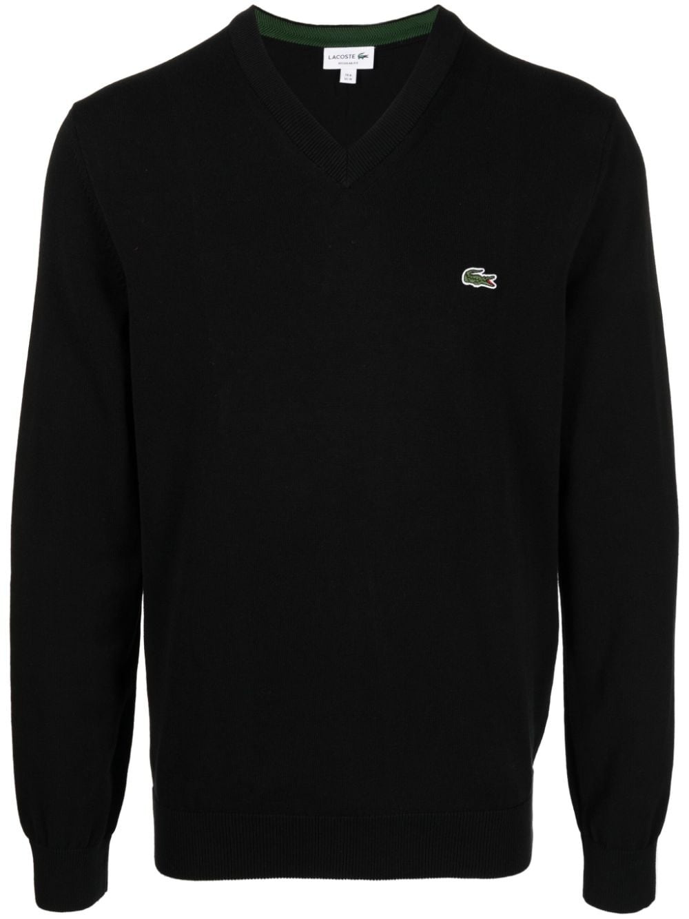 logo-embroidered fine-ribbed jumper Highlights - Jet black - Cotton - Fine ribbed - Embroidered logo at the chest - Ribbed v-neck - Long sleeves - Ribbed cuffs and hem - Straight hem Imported Composition Cotton 100% SIZE & FIT Model measurements Height 6 ft 2 in(1.87 m) Bust/Chest 31.49 in(80 cm) Hips 37.79 in(96 cm) Waist 27.95 in(71 cm) FittingInformation Designed for a regular fit, offering a comfortable loose fit throughout the body The ribbed hem offers a close, comfortable fit Made with a midweight knit, this piece offers some stretch This piece fits true to size – take your usual size Washing instructions Machine Wash