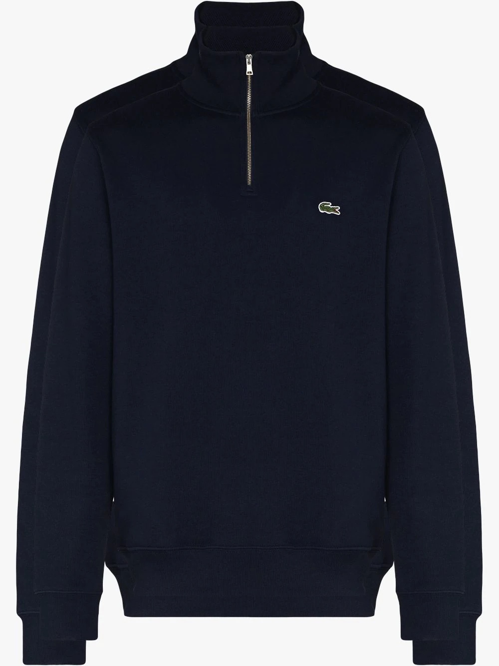 logo-embroidered high-neck sweatshirt Taking the shape of a crocodile, Lacoste's iconic logo was created to represent the brand's founder, who was nicknamed 'the crocodile'. Here, the unmistakable motif adorns the chest of this navy-blue sweatshirt, which is crafted from cotton and cut to a relaxed silhouette. Imported Composition Cotton 100% SIZE & FIT Model measurements Height 6 ft 2 in(1.87 m) Bust/Chest 38.18 in(97 cm) Hips 36.61 in(93 cm) Waist 29.13 in(74 cm) Measurement BUST 40.15 in(102 cm) FittingInformation This piece fits true to size. We recommend you get your regular size Cut for a relaxed fit Made with a mid-weight fabric Washing instructions Machine Wash