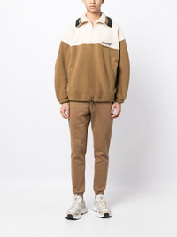 logo-patch elasticated-waist track pants Highlights - Camel brown - Stretch-cotton - Logo patch to the side - Elasticated waistband - Two side slash pockets - Elasticated ankles - Tapered leg - Fleece lining Imported Composition Body: Cotton 84%, Polyester 16% Cotton 99%, Elastane 1% SIZE & FIT Model measurements Height 6 ft 2 in(1.87 m) Bust/Chest 31.49 in(80 cm) Hips 37.79 in(96 cm) Waist 27.95 in(71 cm) FittingInformation Designed for a slim tapered leg, offering a close fit that sits just away from the leg with a closer fit towards the ankle Adjust this piece’s waistband to your preference using the drawstring Made from a midweight non-stretch fabric, this piece offers minimal elasticity when worn This piece fits true to size – take your usual size Washing instructions Machine Wash