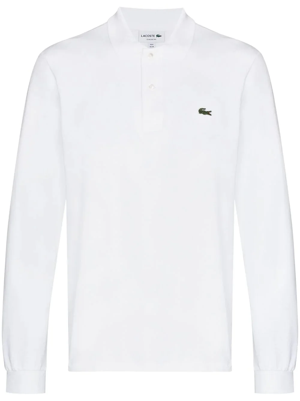 logo-patch long-sleeve polo shirt Up to score some points? With this white polo shirt, you'll be riding your horse in a blink of an eye. Metaphorically speaking, that is. Time to go to work - well, at least you're going in Lacoste. Made in Italy Composition Cotton 100% SIZE & FIT Model measurements Height 6 ft 1 in(1.86 m) Bust/Chest 32.67 in(83 cm) Hips 35.03 in(89 cm) Waist 25.98 in(66 cm) Measurement CHEST 45.66 in(116 cm) Shoulder Width 19.68 in(50 cm) FittingInformation This piece fits true to size. We recommend you get your regular size Cut for a loose fit Made with a mid-weight stretch fabric
