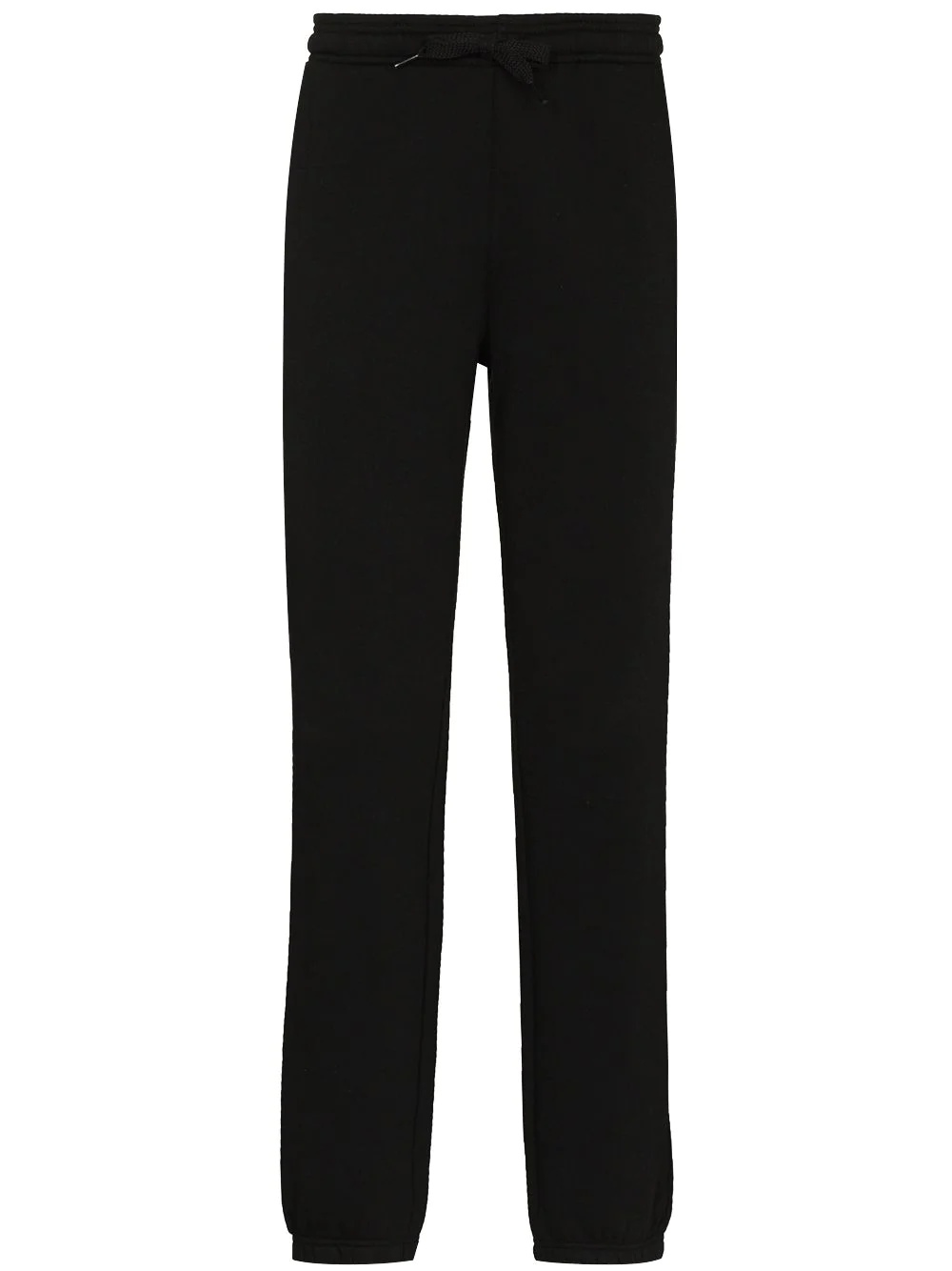 logo track trousers black cotton blend elasticated drawstring waistband two side slit pockets logo patch to the side elasticated cuffs Imported Composition Cotton 83%, Polyester 17% SIZE & FIT Model measurements Height 6 ft 2 in(1.87 m) Bust/Chest 36.41 in(92.5 cm) Hips 35.43 in(90 cm) Waist 29.52 in(75 cm) FittingInformation This piece fits true to size. We recommend you get your regular size Cut for a slim fit Made with a mid-weight fabric Washing instructions Machine Wash