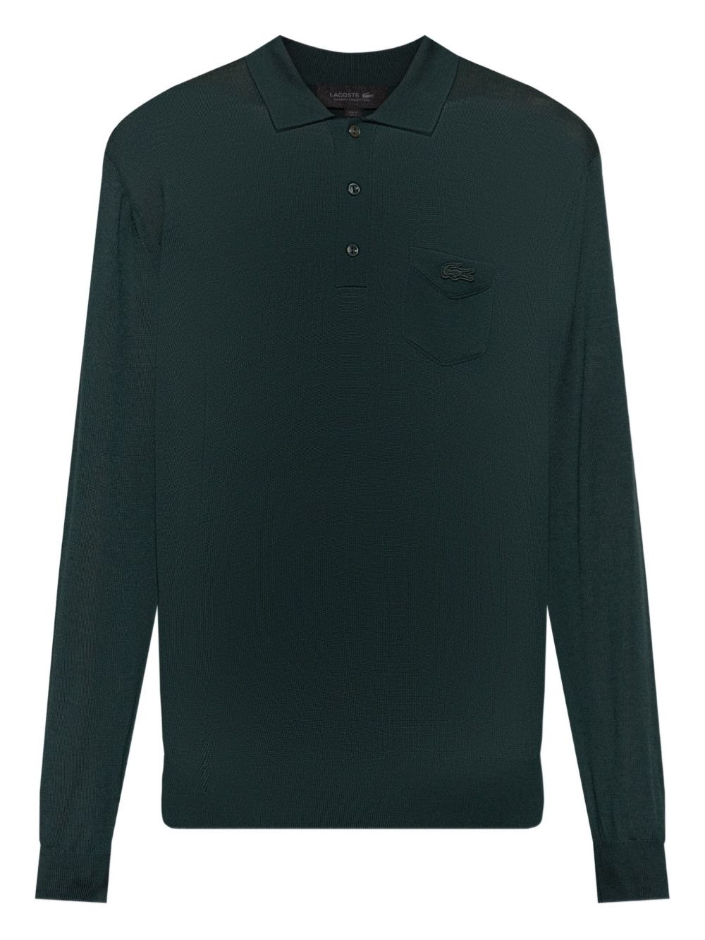 long-sleeve polo shirt Highlights - Dark green - Polo collar - Button fastening - Chest pocket - Long sleeves Made in Italy Composition Wool 100% Washing instructions Read Manufacturer Guidelines