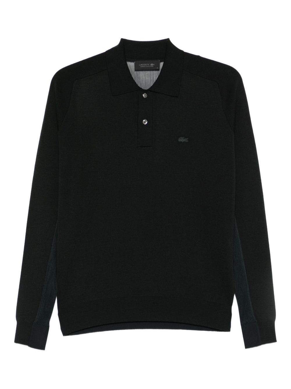 long-sleeve polo shirt Highlights - Dark blue - Ribbed detailing - Short front button fastening - Polo collar - Long sleeves - Logo applique Imported Composition Wool 65%, Rayon 35% Washing instructions Read Manufacturer Guidelines