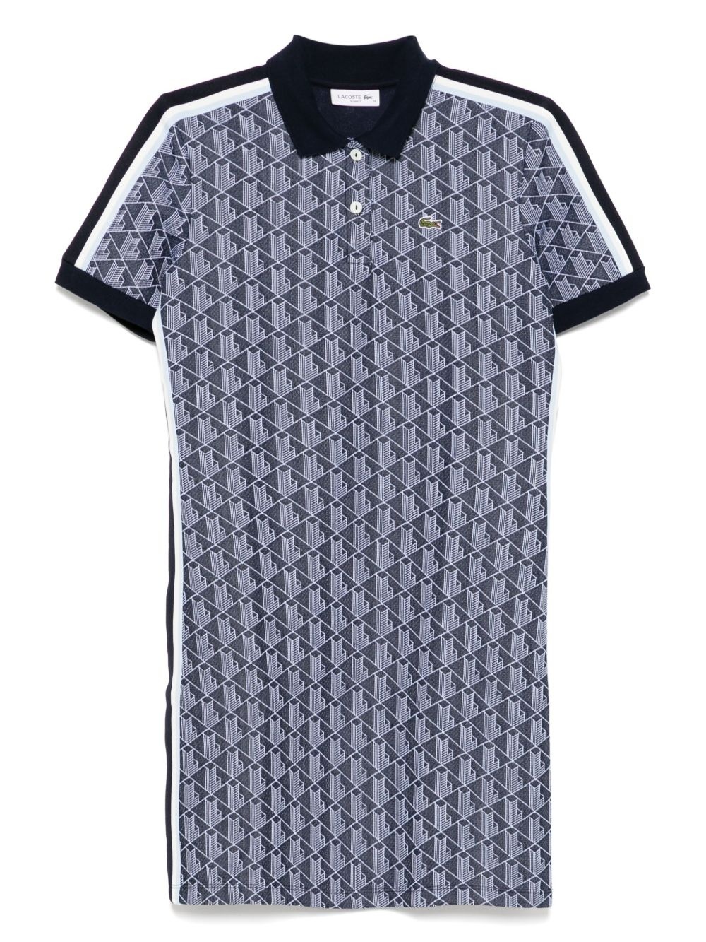 monogram jacquard polo dress Highlights - Navy blue - Short front button fastening - Polo collar - Stripe detailing Imported Composition Polyester 58%, Cotton 38%, Polyamide 4% SIZE & FIT Model measurements Height 5 ft 10 in(1.77 m) Bust/Chest 27.95 in(71 cm) Hips 34.64 in(88 cm) Waist 22.83 in(58 cm) FittingInformation Designed for a slim fit that sits just away from the body offering a close yet comfortable fit Made from a midweight non-stretch fabric