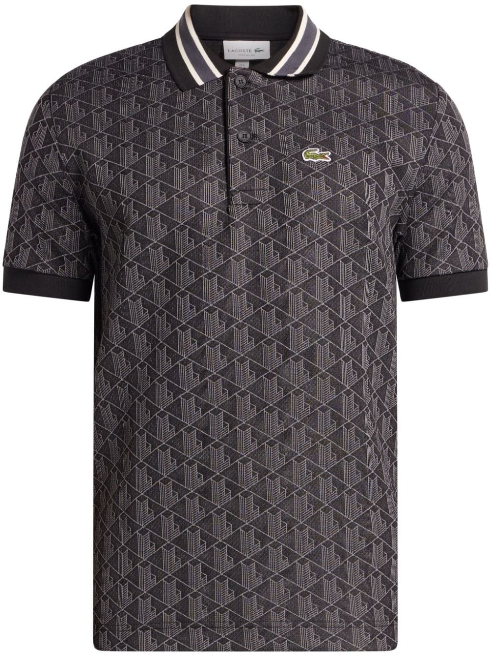 monogram-jacquard polo shirt Highlights - Black/anthracite grey - Organic cotton - Monogram jacquard - Front button placket - Striped edge - Spread collar - Applique logo - Short sleeves Imported Composition Organic Cotton 100%, Recycled Polyester 100% SIZE & FIT FittingInformation Designed for a regular fit, this polo shirt offers a comfortable loose fit throughout the body Made from a midweight non-stretch fabric, this piece offers minimal elasticity when worn Washing instructions Read Manufacturer Guidelines