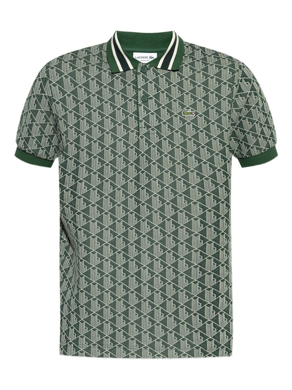 monogram-jacquard polo shirt Highlights - Green - Polo collar - Front button placket - Monogram jacquard pattern - Crocodile logo patch - Short sleeves Imported Composition Cotton 100% Washing instructions Read Manufacturer Guidelines