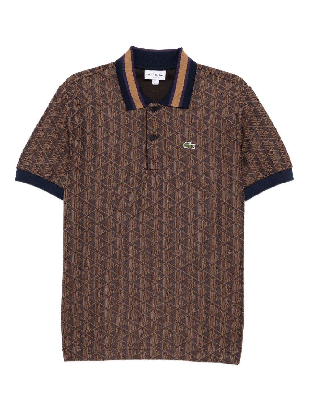monogram-jacquard polo shirt Highlights - Chocolate brown - Front button placket - Polo collar - Short sleeves - Ribbed cuffs Imported Composition Polyester 58%, Cotton 38%, Polyamide 4% Washing instructions Machine Wash
