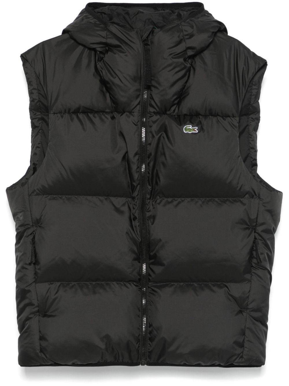 padded gilet Highlights - Black - Front zip fastening - Ripstop texture - Classic hood - Two side zip-fastening pockets Imported Composition Outer: Polyester 100% Lining: Polyester 100%, Polyamide 100%, Goose Down 80%, Feather Down 20% SIZE & FIT Model measurements Height 6 ft 2 in(1.88 m) Bust/Chest 36.61 in(93 cm) Hips 35.82 in(91 cm) Waist 27.95 in(71 cm) FittingInformation Designed for a relaxed fit, this piece allows for comfort and movement when worn Made from a padded non-stretch fabric, giving it no natural elasticity Washing instructions Machine Wash