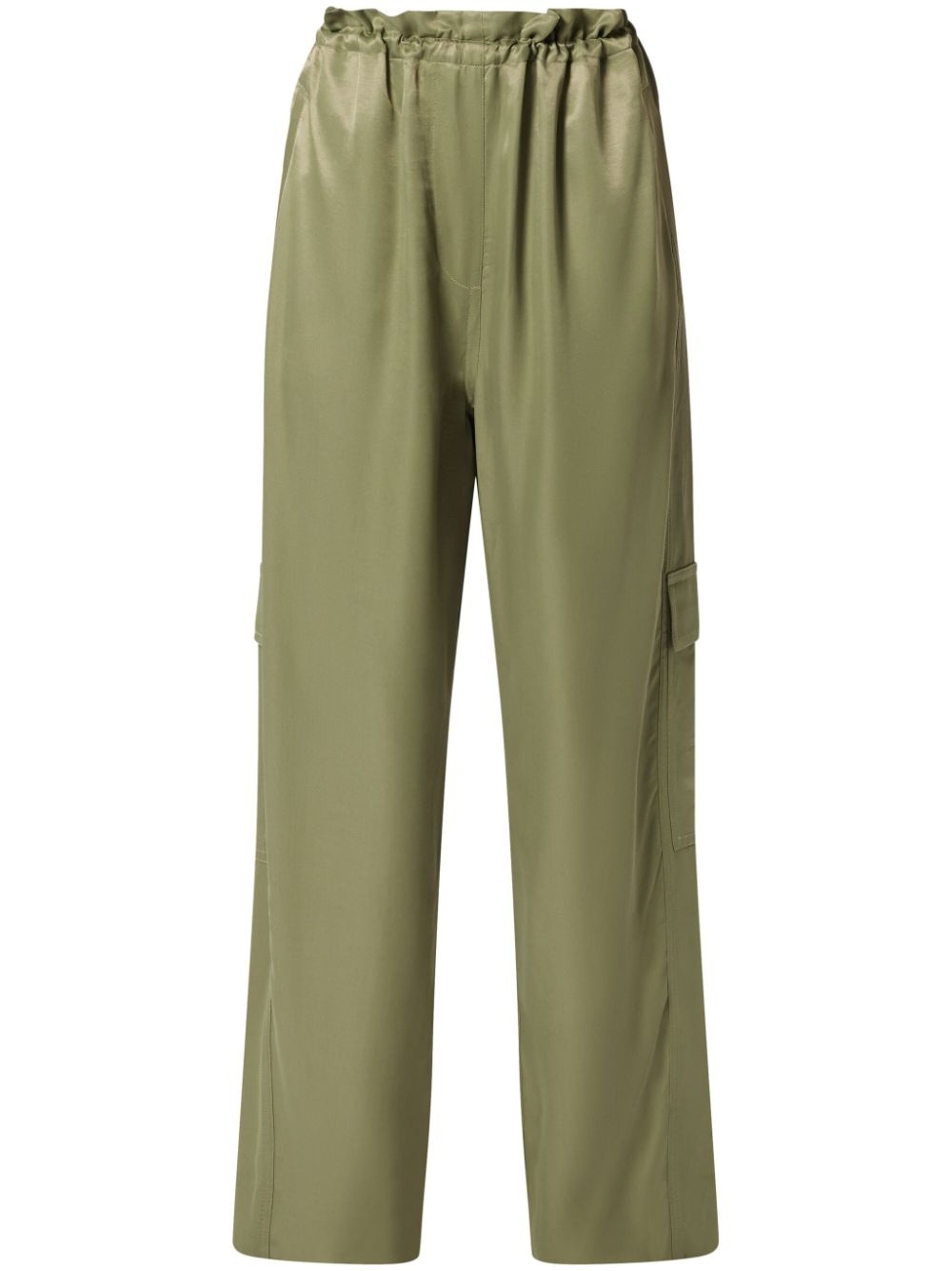 satin cargo pants Highlights - Sage green - Elasticated waistband - Two side slash pockets - Two side cargo pockets - Two rear flap pockets Imported Composition Lining: Cotton 100% Outer: Rayon 100%