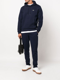 slim-cut track pants Offering a relaxed design, these Lacoste track pants are crafted from a soft cotton blend. In a navy blue hue, they are simply detailed with a small logo patch for understated branding. Imported Composition Cotton 84%, Polyester 16% SIZE & FIT Model measurements Height 6 ft 1 in(1.85 m) Bust/Chest 37.79 in(96 cm) Hips 37.4 in(95 cm) Waist 30.7 in(78 cm) FittingInformation This piece fits true to size. We recommend you get your regular size Cut for a relaxed fit Made with a mid-weight fabric Washing instructions Machine Wash