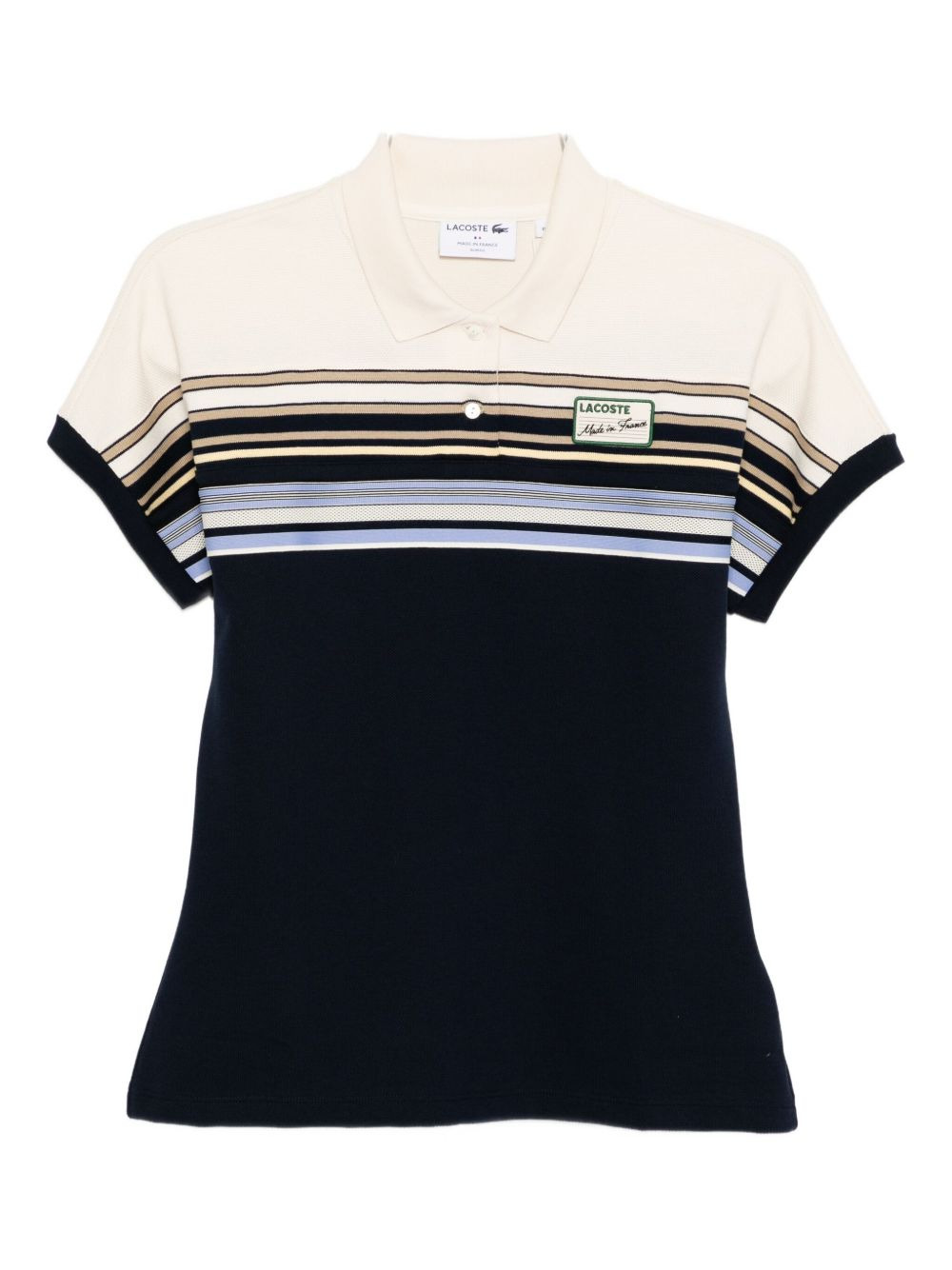 striped polo shirt Highlights - Navy blue - Front button fastening - Logo patch at the chest - Short sleeves Made in France Composition Cotton 98%, Elastane 2% Washing instructions Machine Wash