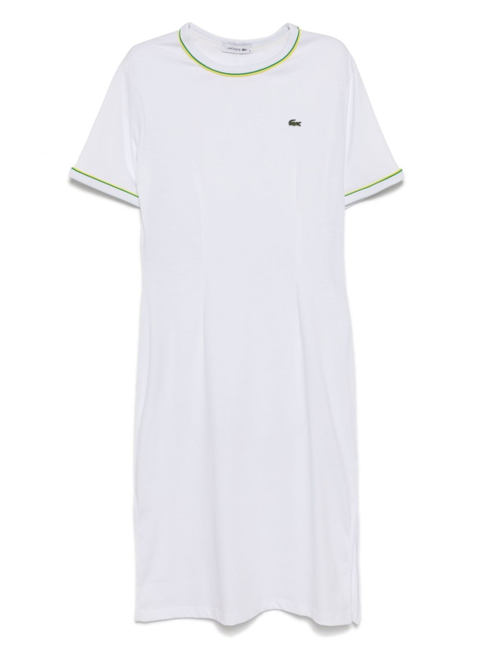 trimmed jersey dress Highlights - White - Round neck - Applique logo Imported Composition Cotton 100% SIZE & FIT Model measurements Height 5 ft 10 in(1.77 m) Bust/Chest 31.49 in(80 cm) Hips 35.43 in(90 cm) Waist 25.19 in(64 cm) FittingInformation Designed for a slim fit that sits just away from the body offering a close yet comfortable fit The dart stitching adds structure and a closer fit in the torso of this piece Made from a midweight non-stretch fabric, this piece offers minimal elasticity when worn