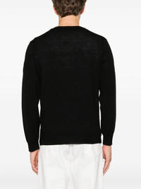 V-neck sweater Highlights - Black - Wool blend - Knitted construction - Ribbed v-neck - Long sleeves - Logo patch at the chest - Ribbed cuffs and hem Imported Composition Polyester 50%, Wool 50% SIZE & FIT Model measurements Height 6 ft 2 in(1.87 m) Bust/Chest 38.97 in(99 cm) Hips 37.99 in(96.5 cm) Waist 29.52 in(75 cm) FittingInformation Designed for a regular fit, offering a comfortable loose fit throughout the body The ribbed hem offers a close, comfortable fit Made with a midweight knit, this piece offers some stretch
