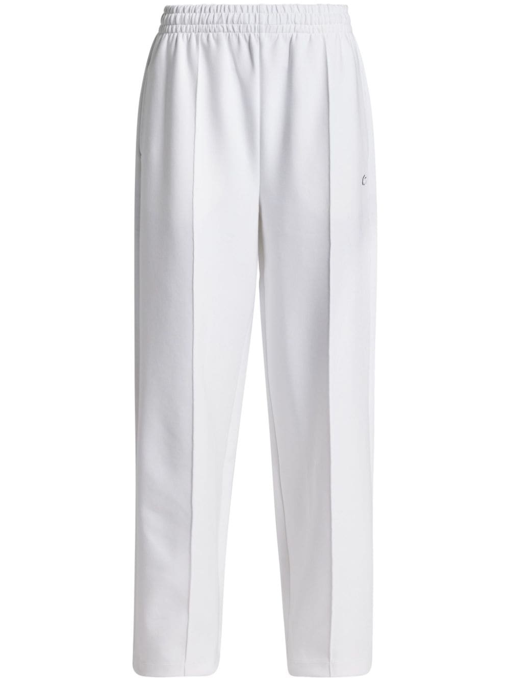 wide-leg track pants Highlights - White - Cotton blend - Pique weave - Applique logo - Pressed crease - Elasticated waistband with internal drawstring - Side welt pocket - Wide leg Imported Composition Outer: Cotton 77%, Polyester 18%, Spandex/Elastane 5% Lining: Cotton 100% Washing instructions Read Manufacturer Guidelines