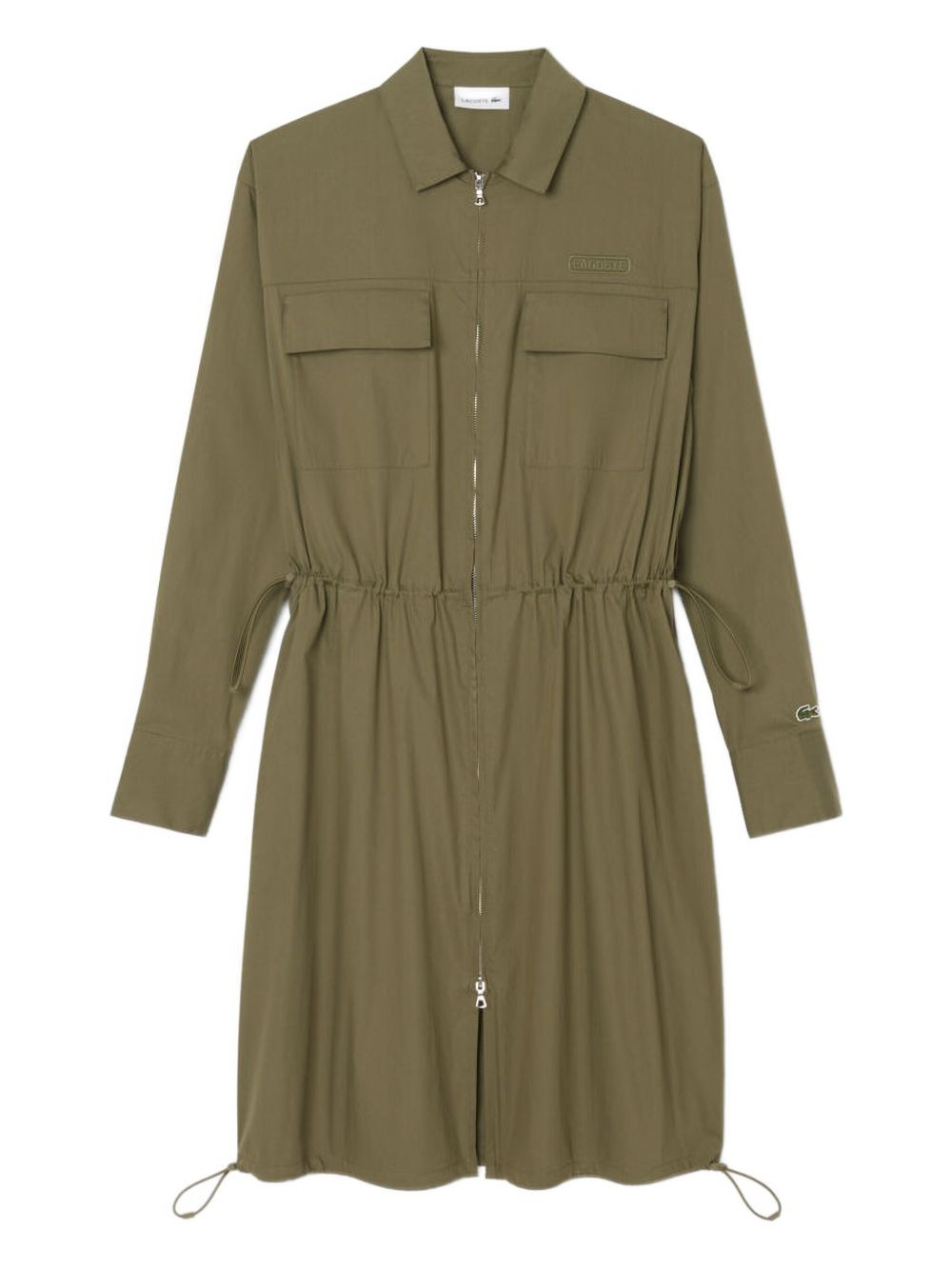 zip-front drawstring dress Highlights - Olive green - Zip front fastening - Drawstring waist - Long sleeves - Buttoned cuffs - Patch pockets Imported Composition Cotton 81%, Polyamide 19% Washing instructions Read Manufacturer Guidelines