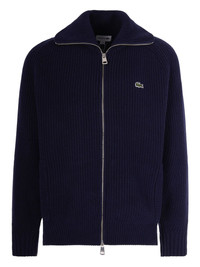zip logo cardigan Highlights - Blue - Ribbed knit - Zip fastening - Logo applique - Long sleeves Imported Composition Wool 100% Washing instructions Read Manufacturer Guidelines