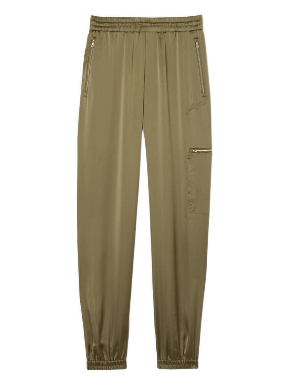 zip-pocket satin trousers Highlights - Olive green - Satin texture - Elasticated waistband - Zip-fastened pockets - Logo applique - Elasticated ankles Imported Composition Satin 100% Washing instructions Read Manufacturer Guidelines