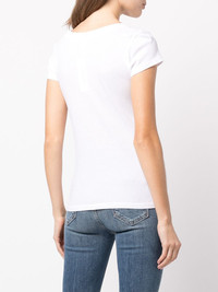 crew-neck T-shirt white cotton round neck short sleeves straight hem Made in United States Composition Cotton 100% SIZE & FIT Model measurements Height 5 ft 10 in(1.77 m) Bust/Chest 33.85 in(86 cm) Hips 35.03 in(89 cm) Waist 24.01 in(61 cm) FittingInformation This piece fits true to size. We recommend you get your regular size Cut for a relaxed fit Made with a mid-weight fabric