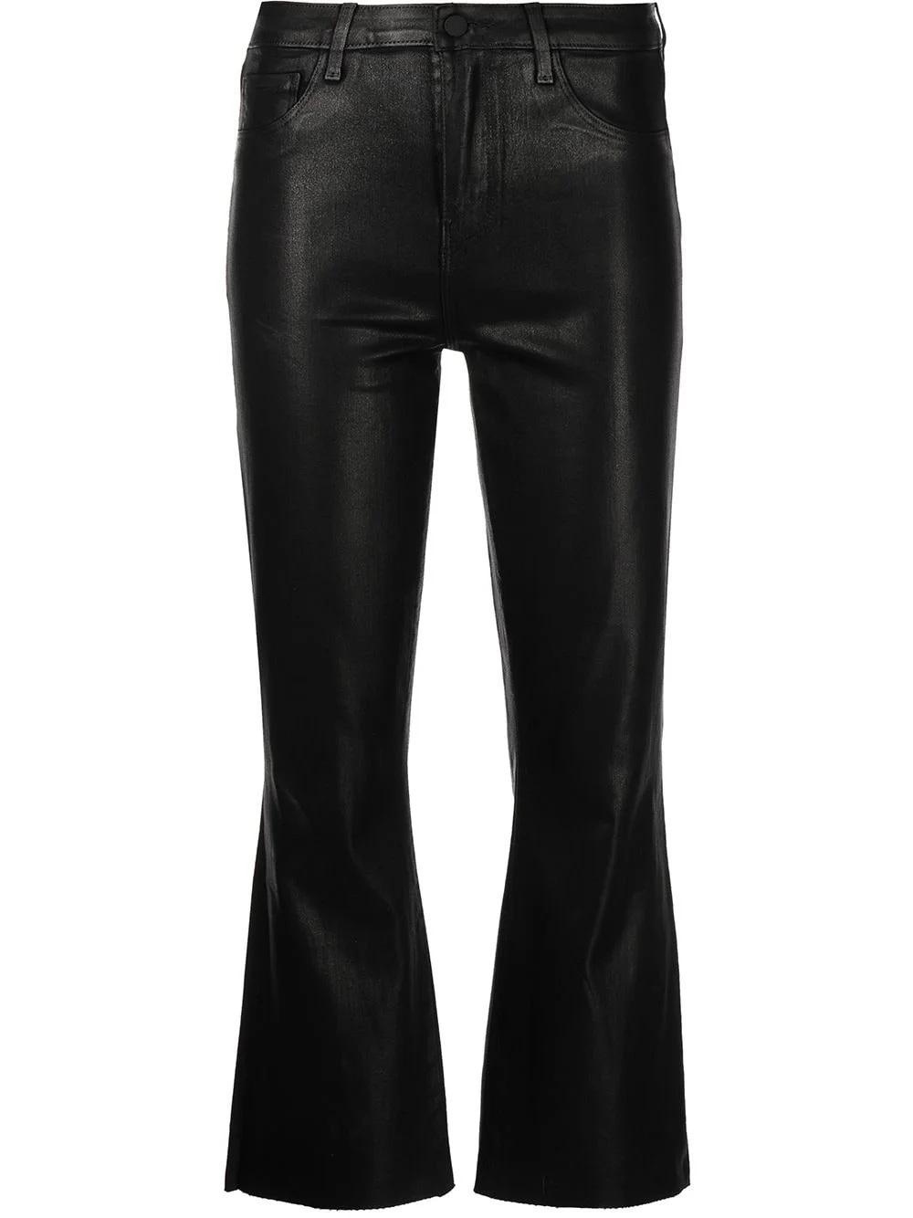Kendra cropped jeans Highlights - Black cotton high-rise flared jeans from l'agence featuring dark wash, logo patch to the rear, belt loops, front button and zip fastening, classic five pockets, slim cut, flared and cropped leg. Made in United States Composition Cotton 86%, Spandex/Elastane 14% SIZE & FIT Model measurements Height 5 ft 10 in(1.77 m) Bust/Chest 33.85 in(86 cm) Hips 35.03 in(89 cm) Waist 24.01 in(61 cm) FittingInformation Designed with a flared hem, these jeans allow for a close fit at the waist with a slim fit over the leg and widening towards the hem Cropped in length Constructed from stretch denim, this piece offers a stretch fit with durability This piece fits true to size – take your usual size Washing instructions Dry Clean Only